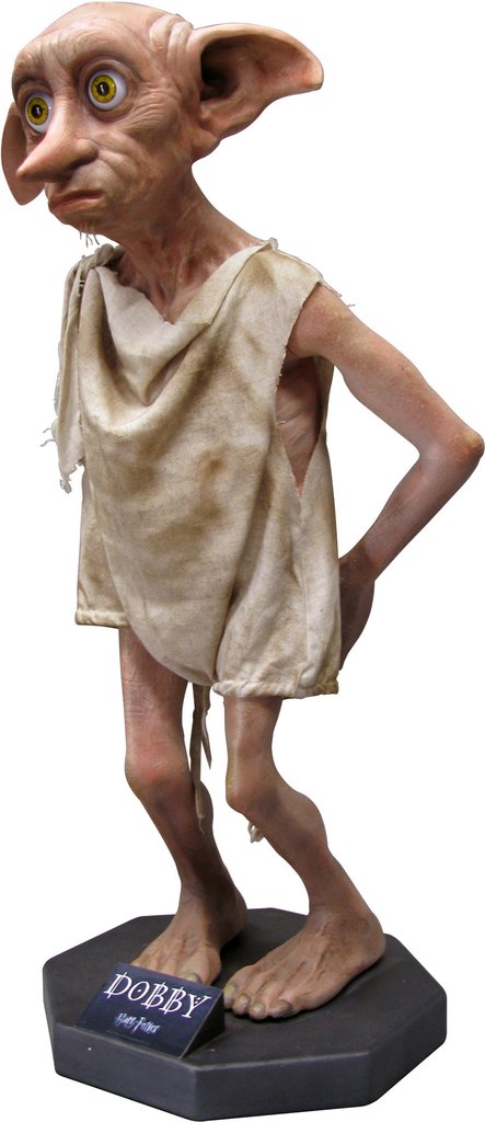 Magnifique statue taille réelle de Dobby en résine et fibre de verre de très haute qualité à l´échelle 1/1, taille env. 95 cm de haut sur sa base.