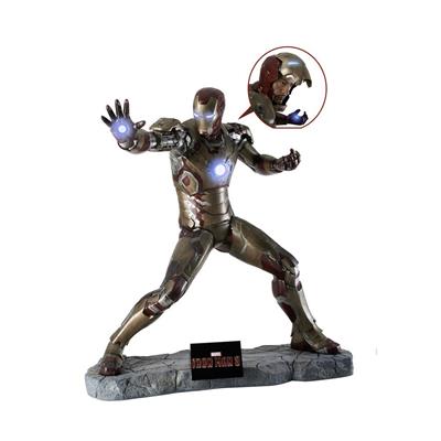 Magnifique statue taille réelle de Iron Man en résine et fibre de verre de très haute qualité à l´échelle 1/1, taille env. 180 cm sur sa base. Modèle extrêmement détaillé, fini et peint à la main, réalisé par le Studio Oxmox pour la sortie du film Iron Man 3. Le casque peut s'ouvrir pour laisser apparaitre le visage de Tony Stark.