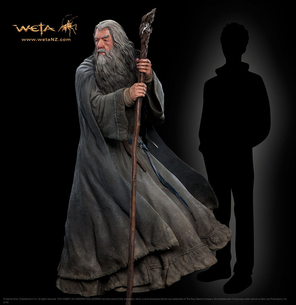 Superbe statue de Gandalf Le Gris en résine et fibre de verre de très haute qualité à l´échelle 1/1, taille env. 178 cm.